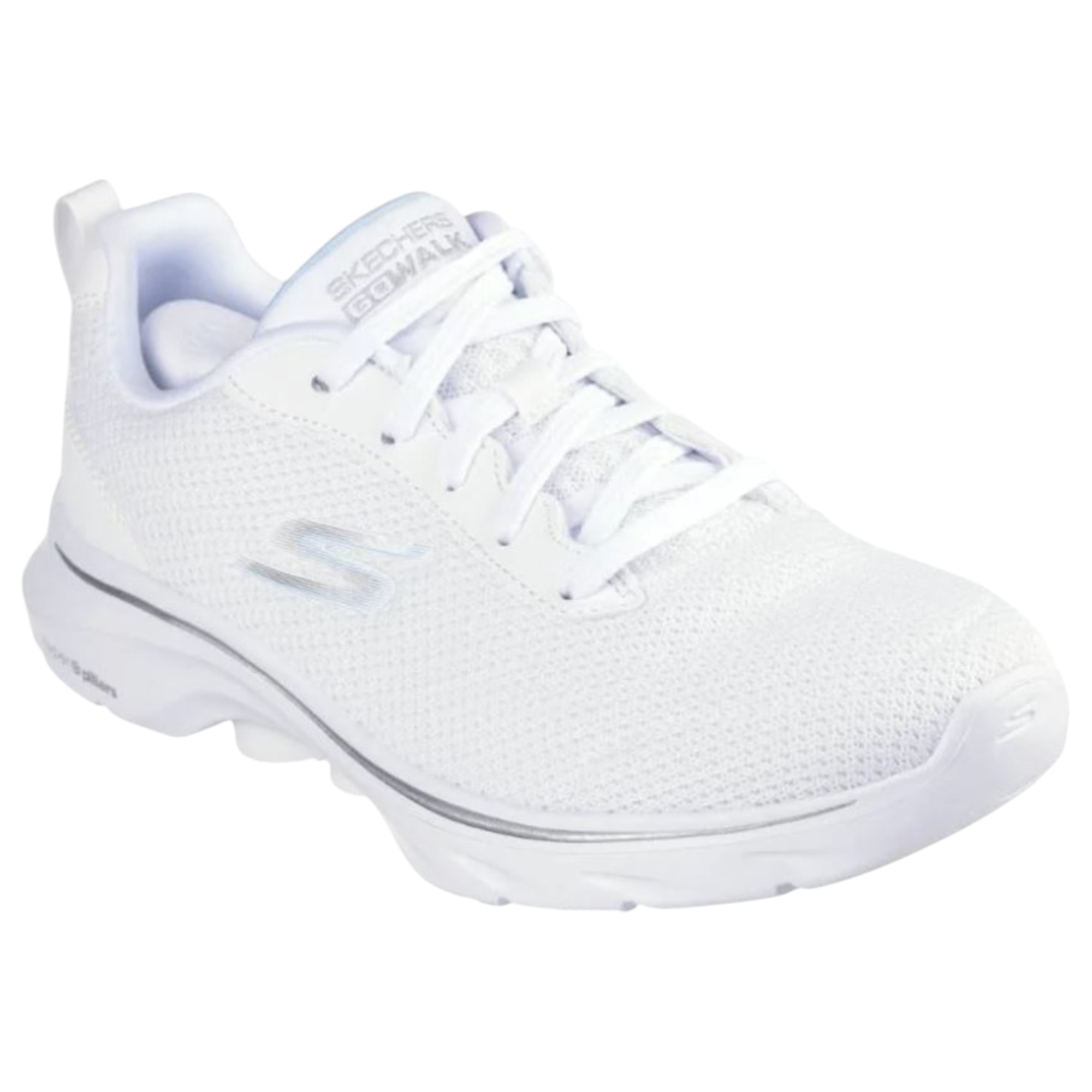 Womens Skechers Go Walk 7 - Clear Path White Lace Up Sneaker Shoes