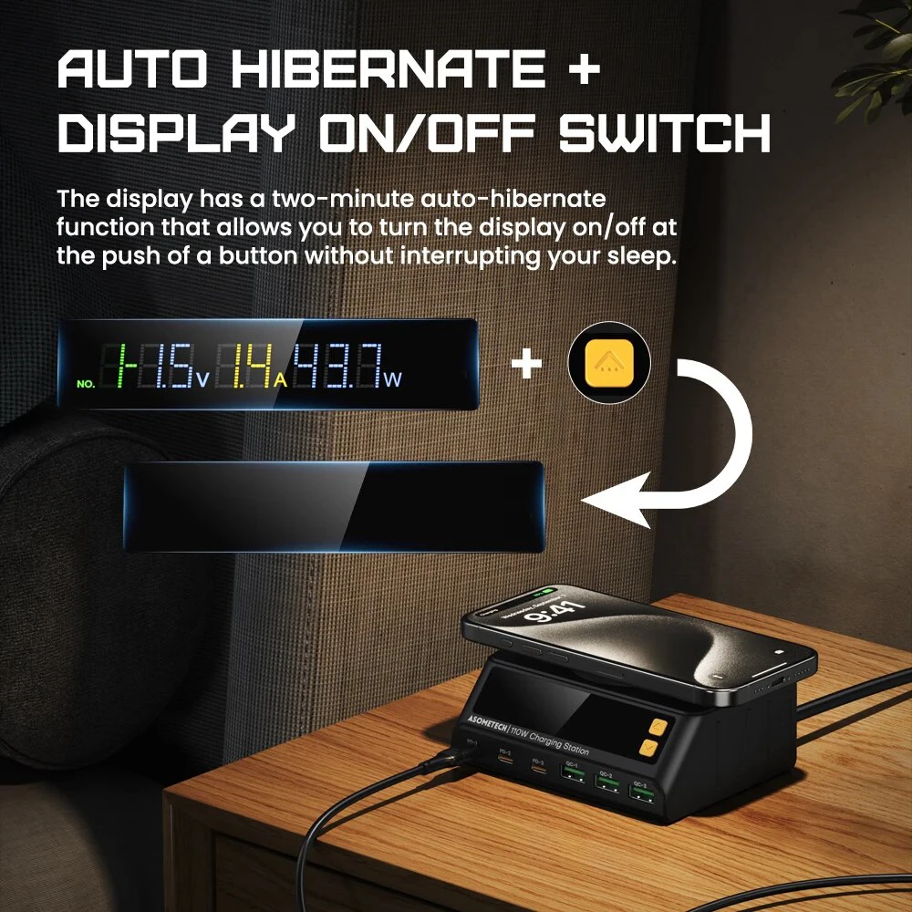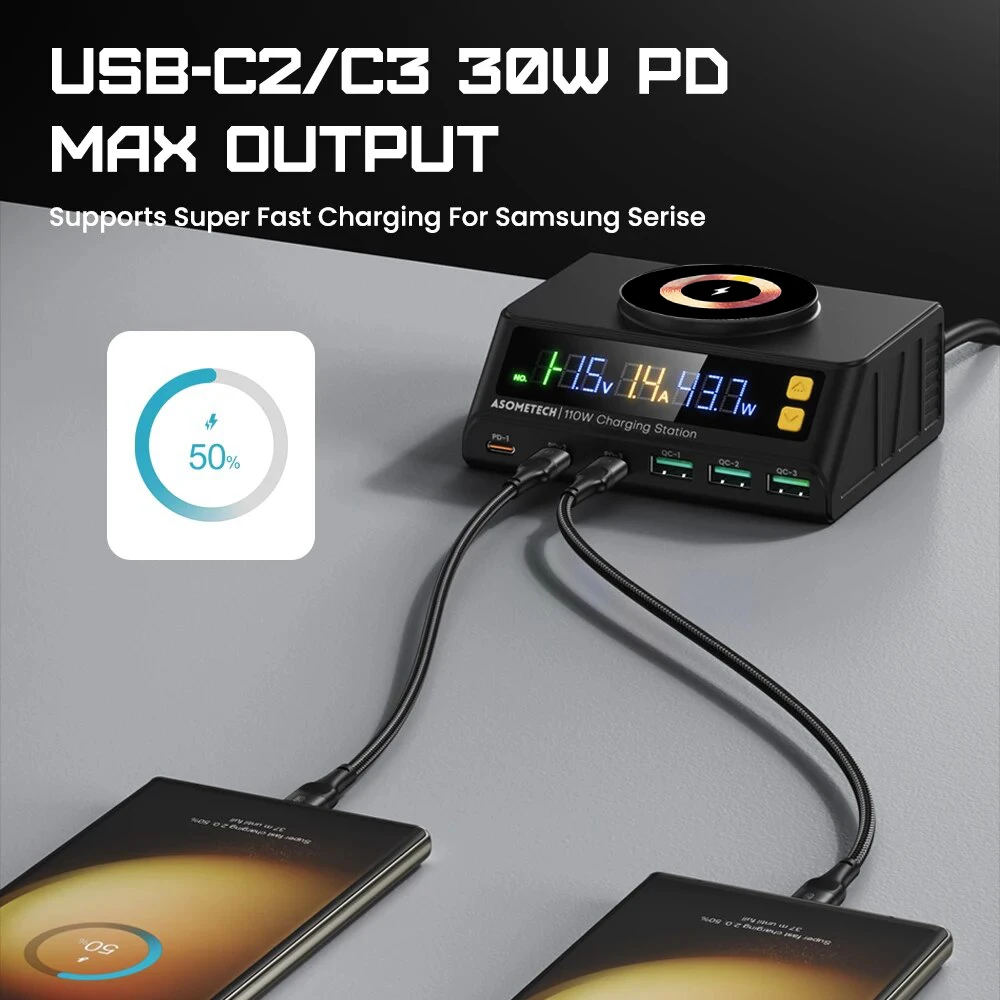 • High Power Output :With an impressive 110W power output, this charger station ensures fast and efficient charging for your devices, reducing the time you have to wait.
