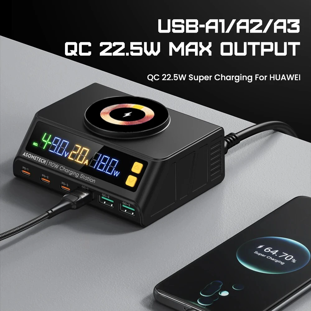 • Fast Charging Protocols :Powered by Qualcomm Quick Charge protocols, this charger station guarantees quick and reliable charging, saving you precious time.