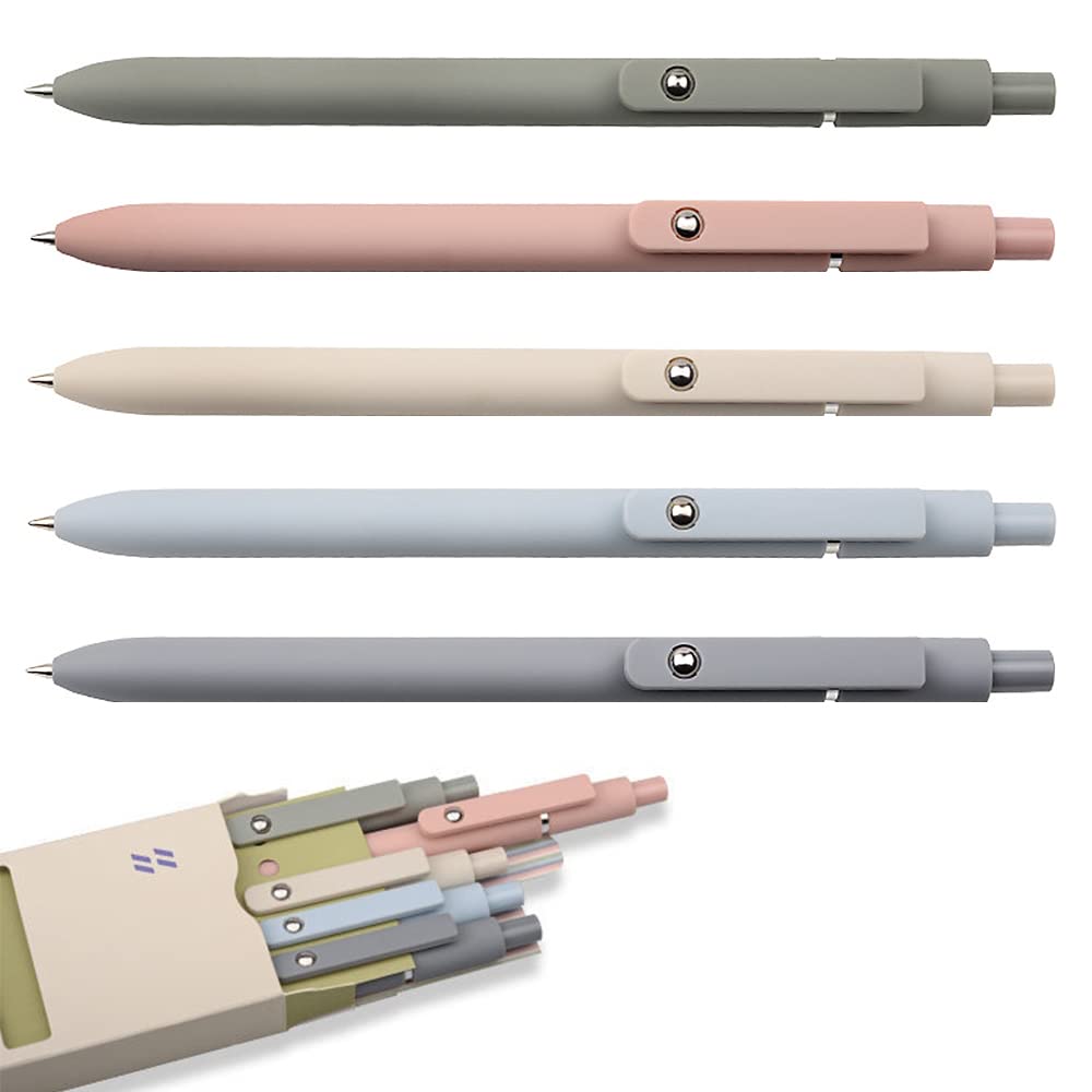 Quick Dry Ink Pens, Gel Pens Fine Point Smooth Writing, Retractable 0.5 mm Black Ink Pens, Rollerball Pens for Note Taking School Office Supplies, Cute Pens for Women Gifts (5Pcs Morandi)