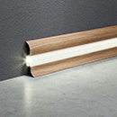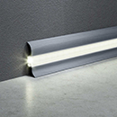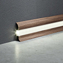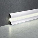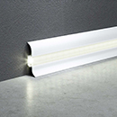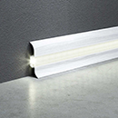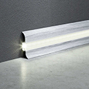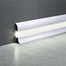 Mit unseren Fußleisten verschönern Sie Ihren Raum im Handumdrehen. Durch die satinierte Nut in der Mitte der Leiste lässt sich problemlos ein LED-Streifen (je nach Auswahl im Lieferumfang enthalten) integrieren. Durch die Montage unserer LED-Streifen entsteht dadurch eine stilvolle indirekte Bodenbeleuchtung.