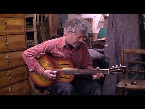 Steel body with 'Triolian' lacquer finish - mahogany neck with bound 'antique' walnut fretboard & vintage style slotted headstock - 9.5" precision hand spun cone - handmade maple string saddle solid