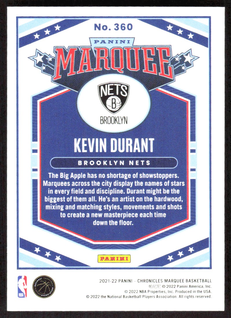 2021-22 6967E Panini Chronicles MARQUEE ASIA SCOPE SP Kevin Durant Brooklyn Nets
