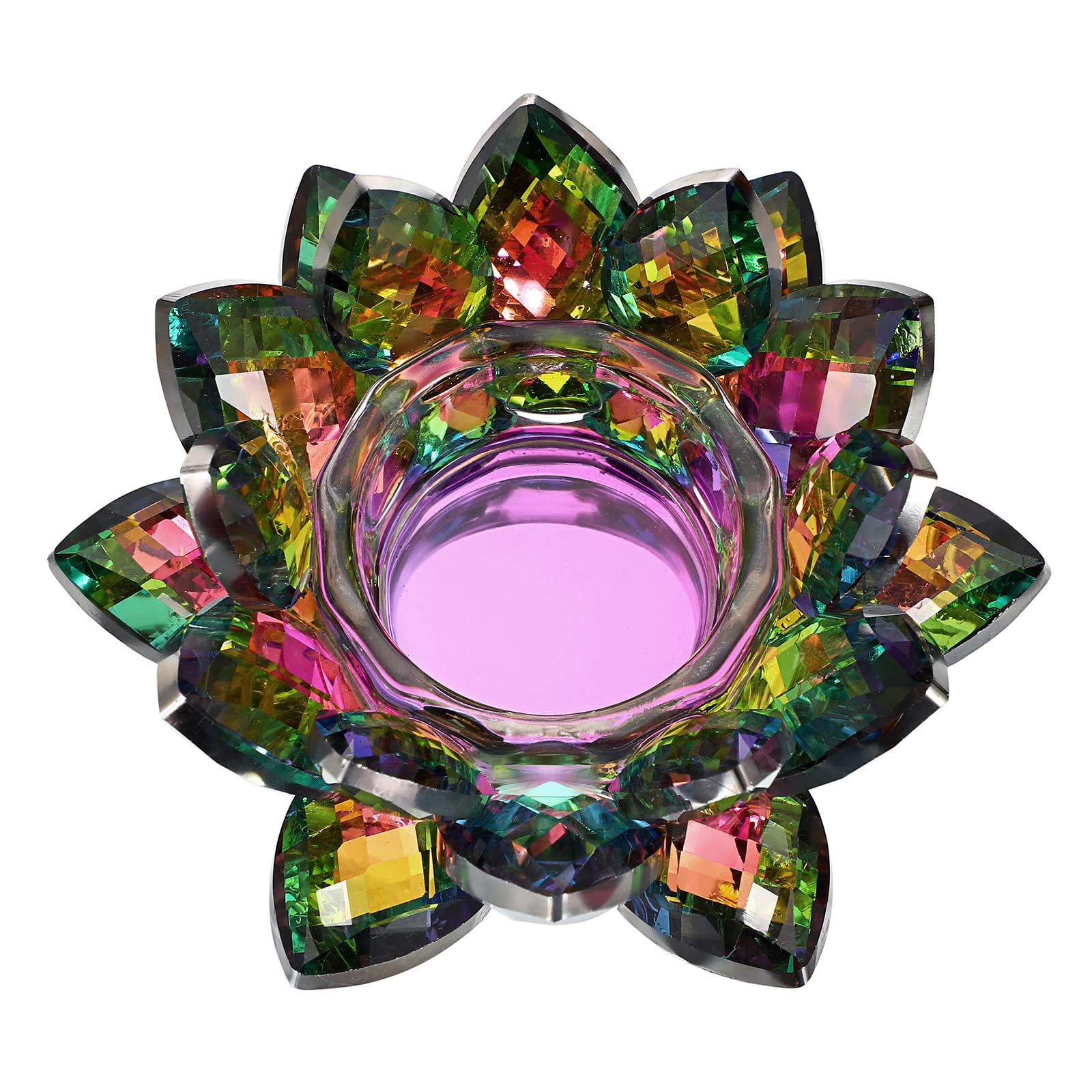 Made of thick and durable crystal, this lotus tealight candle holder looks sparkly and eye-catching, having strong dust & heat resistance, each lotus petal will glitter like diamond and catch / reflect sunlight when illuminating it directly.