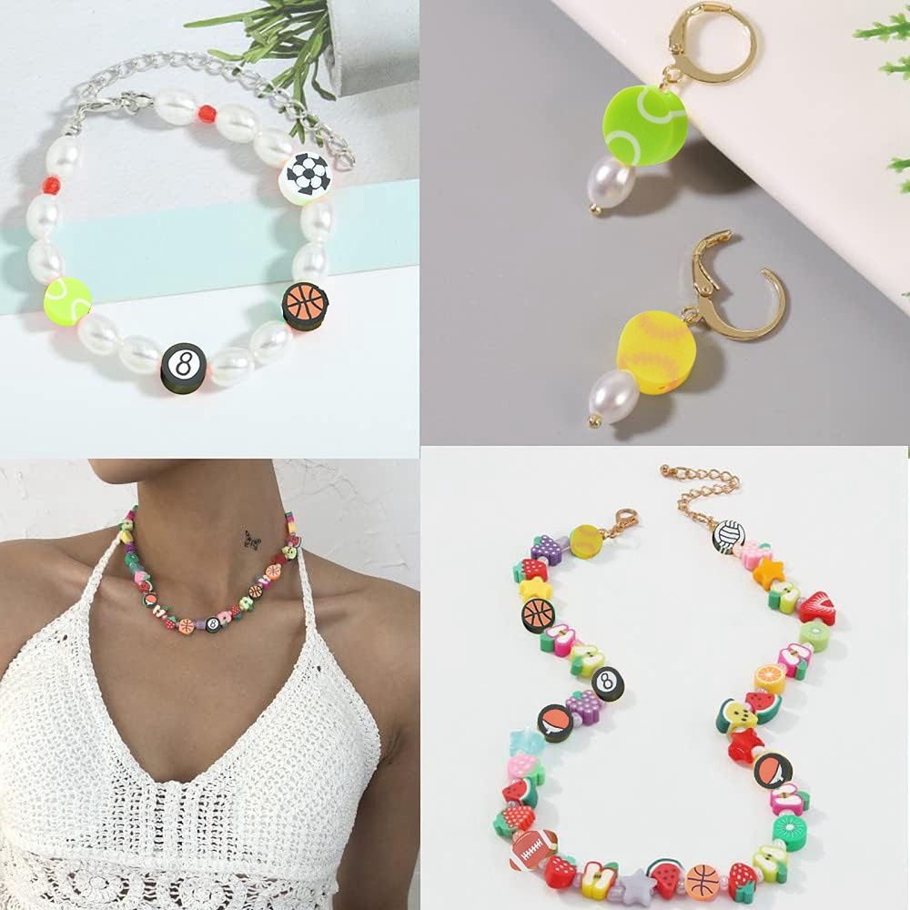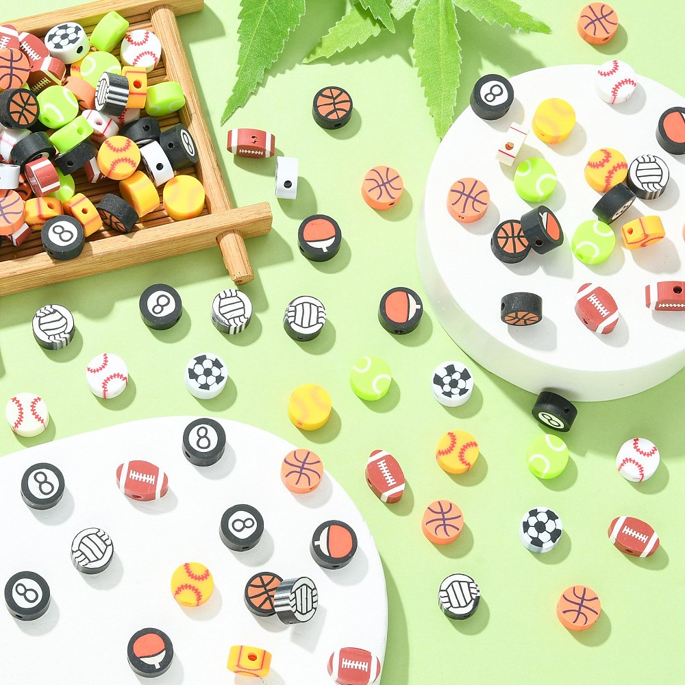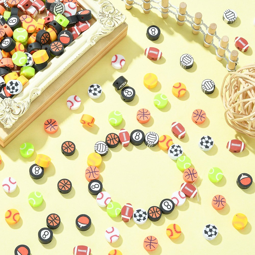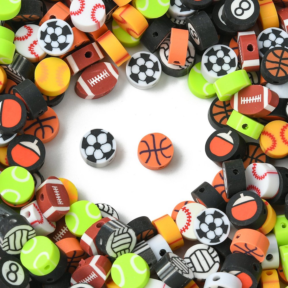 200Pcs Handmade Polymer Clay Beads, Sports Style, Flat Round, Mixed Color