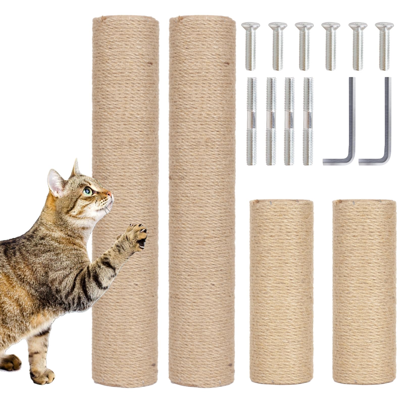 Natural Sisal Replacement Scratching Post, 4 Pieces M8 Cat Scratch Post Refill Pole Parts for Refurbishment, White, Include Screws (Nature-15.7''+15.7''+7.87''+7.87'')