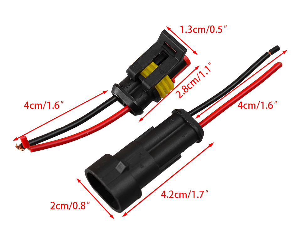 4) 2 Pin/2 Way Sealed Waterproof Connector with the 4cm wire.Preinstalled.Use for car, truck, boat, motorcycle, and other wire connections.