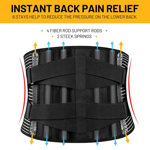 Feature:【Relieve LOWER BACK PAIN 】Freetoo Back brace contains 4 Memory-aluminum stays that are quadruple harder than the commonly used PP strips,and 2 steel springs placed along the waist side, offer 360° stronger vertical support to lower back,prevent excessive rolling of your muscles and decrease the pressure on your discs .【Well wear under clothes】The back support made of 4-way stretch elastic material,3D knitting technology by different compression levels, for superior fit,breath and comfort. The inner layer is made of velvet fabric, giving an ultimate baby-skin-like silky touch,perfect for dressing internally.【PREVENT BACK INJURIES】Back support with 2 elastic straps are designed to add extra compression around lower back to prevent back injuries from weight lifting, long time standing or sitting, doing housework, working, etc. Relief waist muscles ache, disc herniation, sciatica, scoliosis etc when wearing the back belt.
