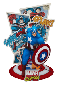 From Beast Kingdom. A PREVIEWS Exclusive! Celebrate 60 years of Marvel Comics with these amazing new figurines from Beast Kingdom! The D-Stage "Staging Your Dreams" series launches a new collection of Marvel Comics figurines in celebration of Marvel's 60th-anniversary, featuring two iconic characters: Iron Man and Captain America. This Captain America figurine is rendered in a comic book-accurate style, with comic panel backgrounds and exciting typography straight from the classic comic book pages. The base showcases a distinctive object representing the patriotic hero, namely Captain America's star-adorned shield. With meticulous coloring techniques and detailed character scenes, these figurines are a must-have collectible for Marvel fans of all ages and the perfect way to show your love for Marvel Comics.