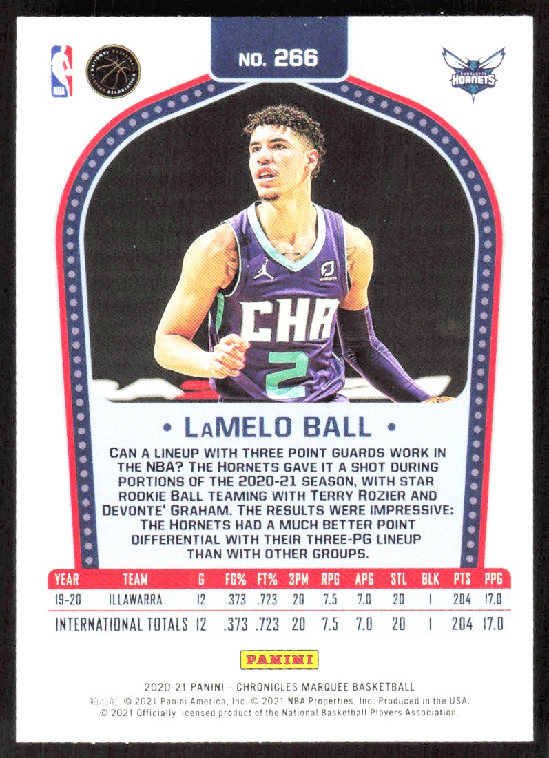 2020-21 8170E Panini Chronicles MARQUEE LaMelo Ball Rookie Charlotte Hornets