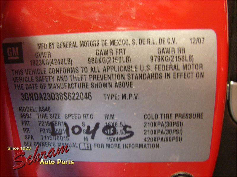 IMPALA 14 VIN 1 (4th digit, New Style), 2.4L