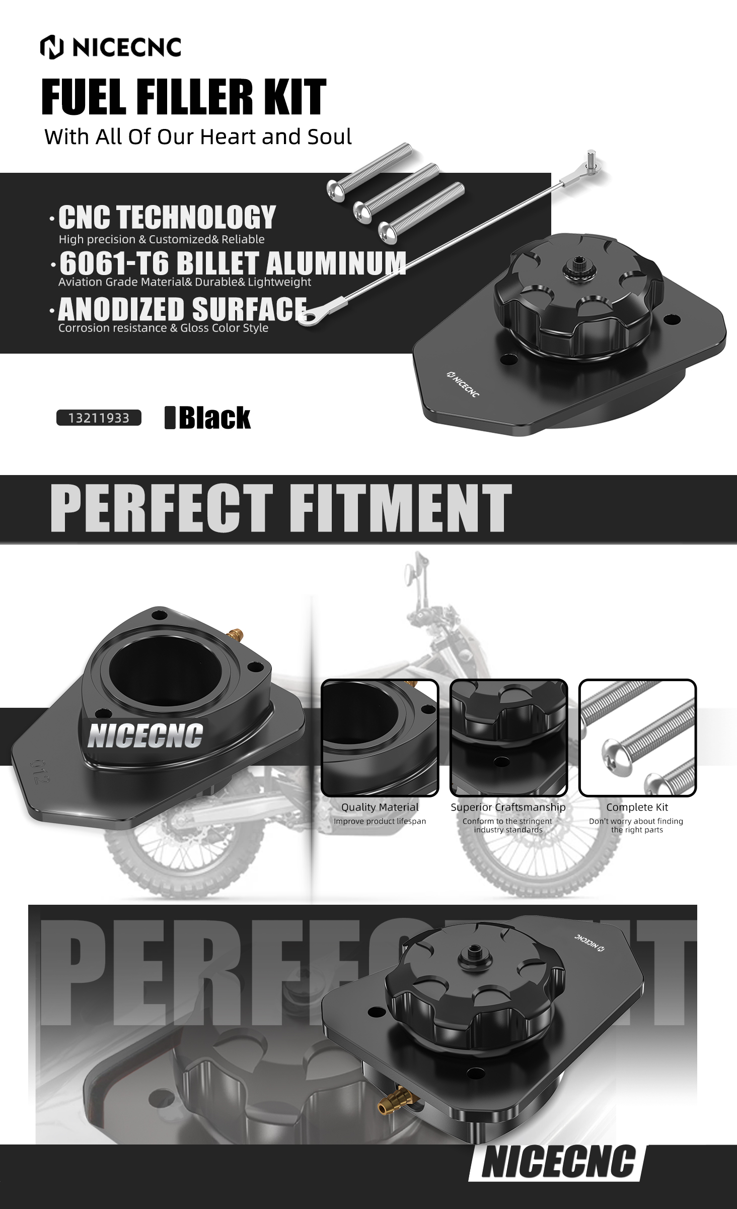 ● Haut goulot de remplissage de carburant pour empêcher les particules de sable et de boue de contaminer votre réservoir pendant le ravitaillement, garantissant un réservoir de carburant propre et prolongeant la durée de vie de votre pompe à carburant.