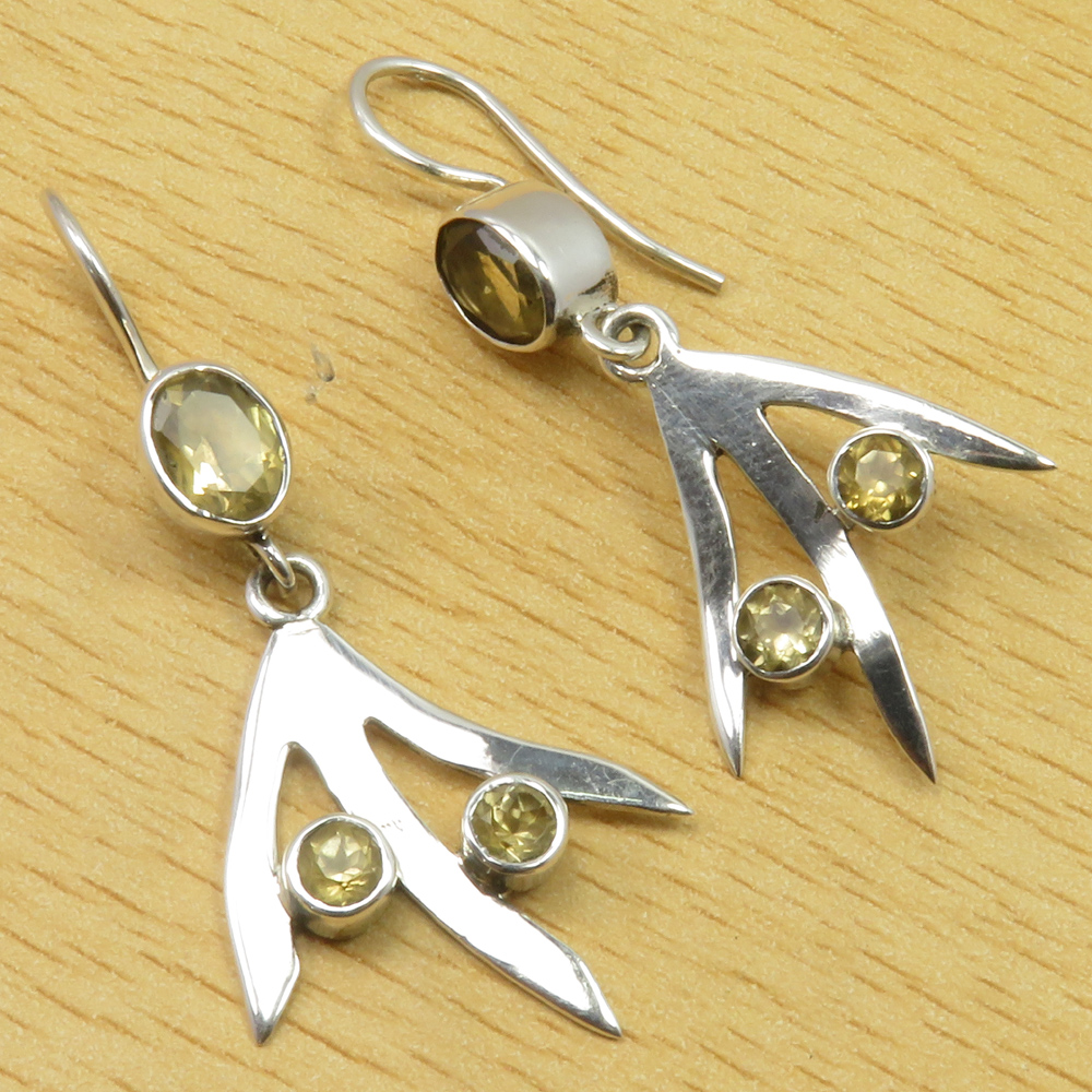Authentic CITRINE Earrings 1.9" Expensive-Looking 925 Pure Silver Unique Jewelry