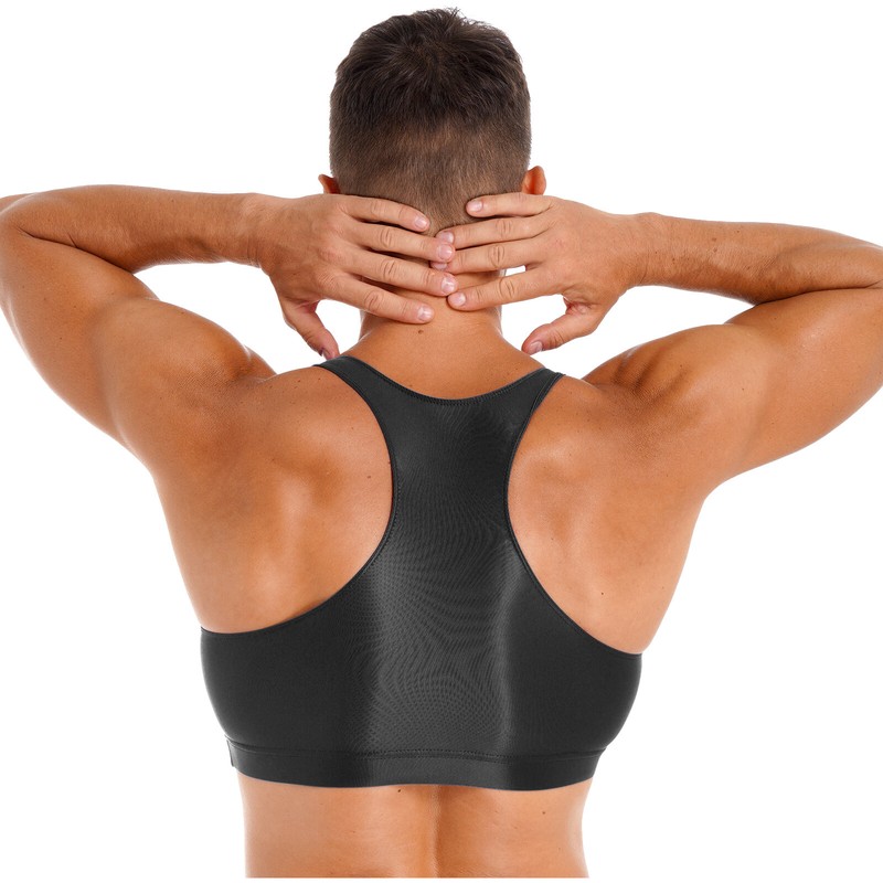 Mens Glossy U Neck Tank Tops Solid Color Sleeveless Crop Top Vest.
