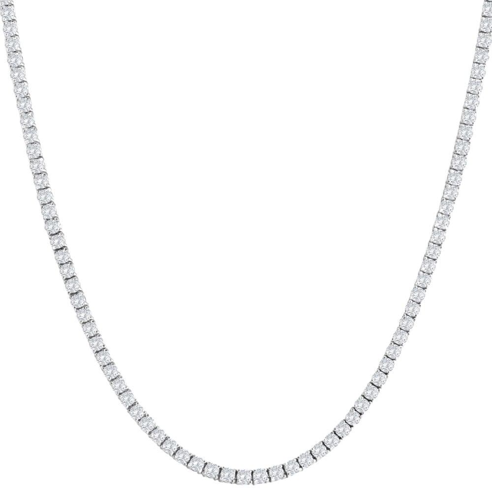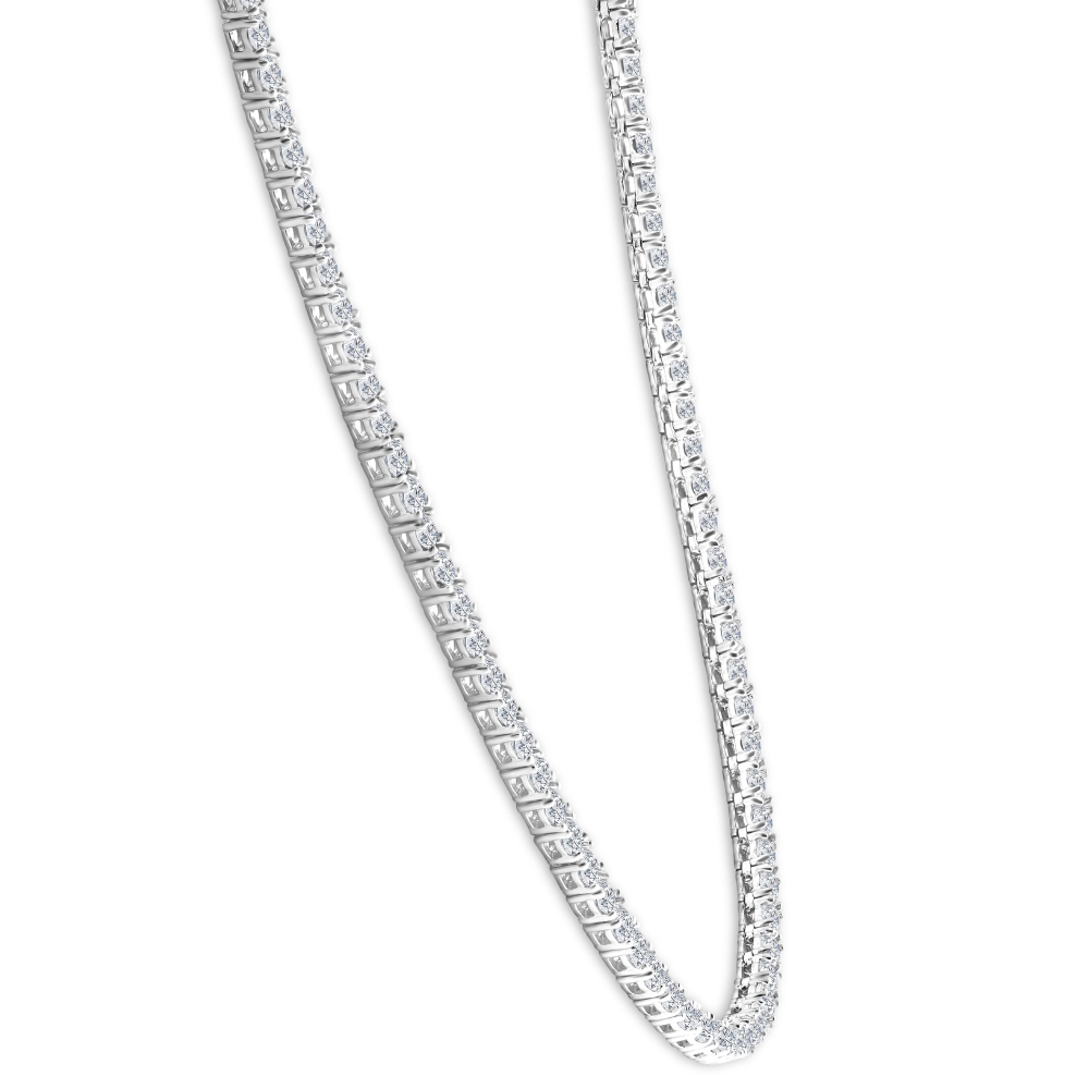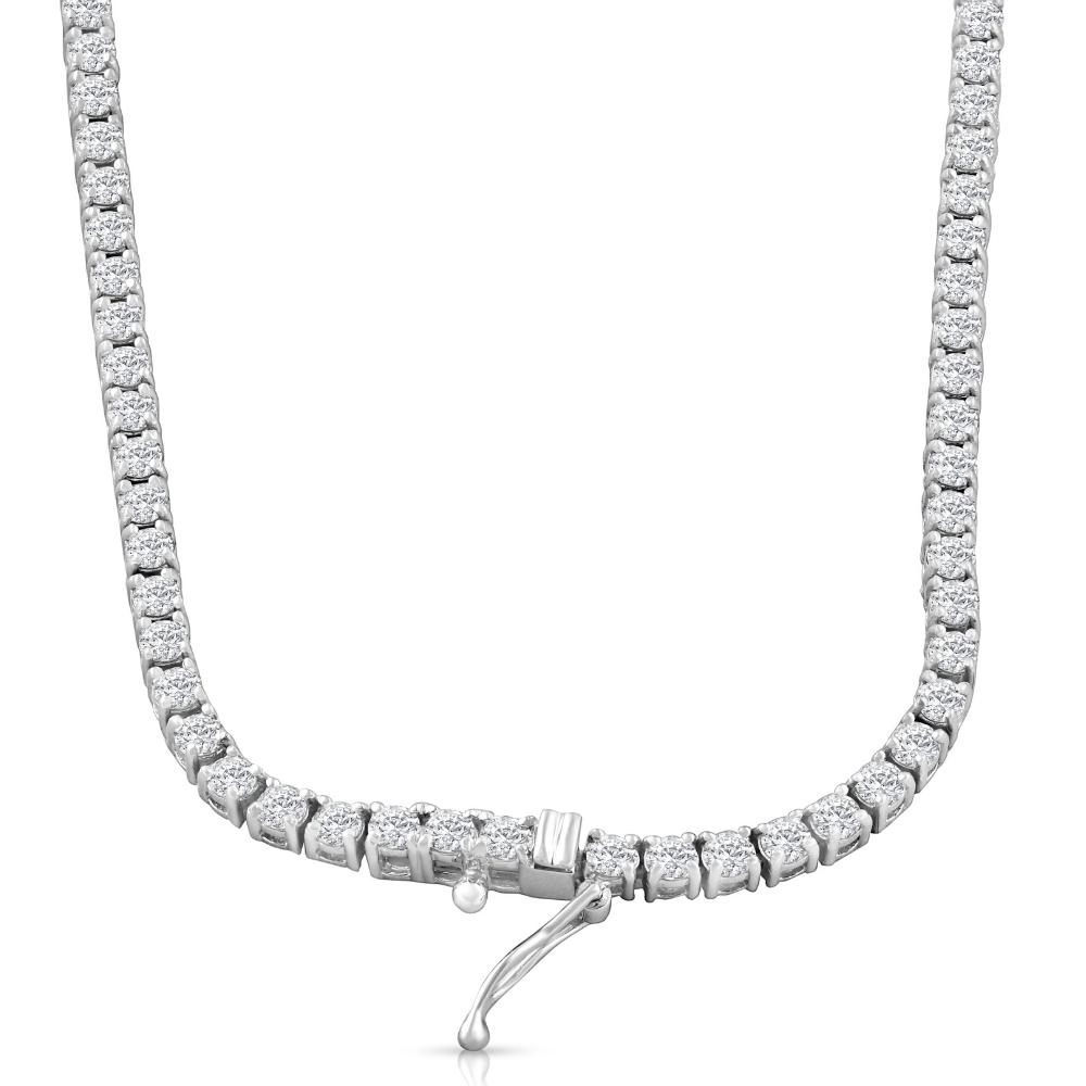 Women's high-quality tennis necklace features round brilliant cut natural diamonds. All diamonds are set in solid 14k white gold flexible high polished mounting.