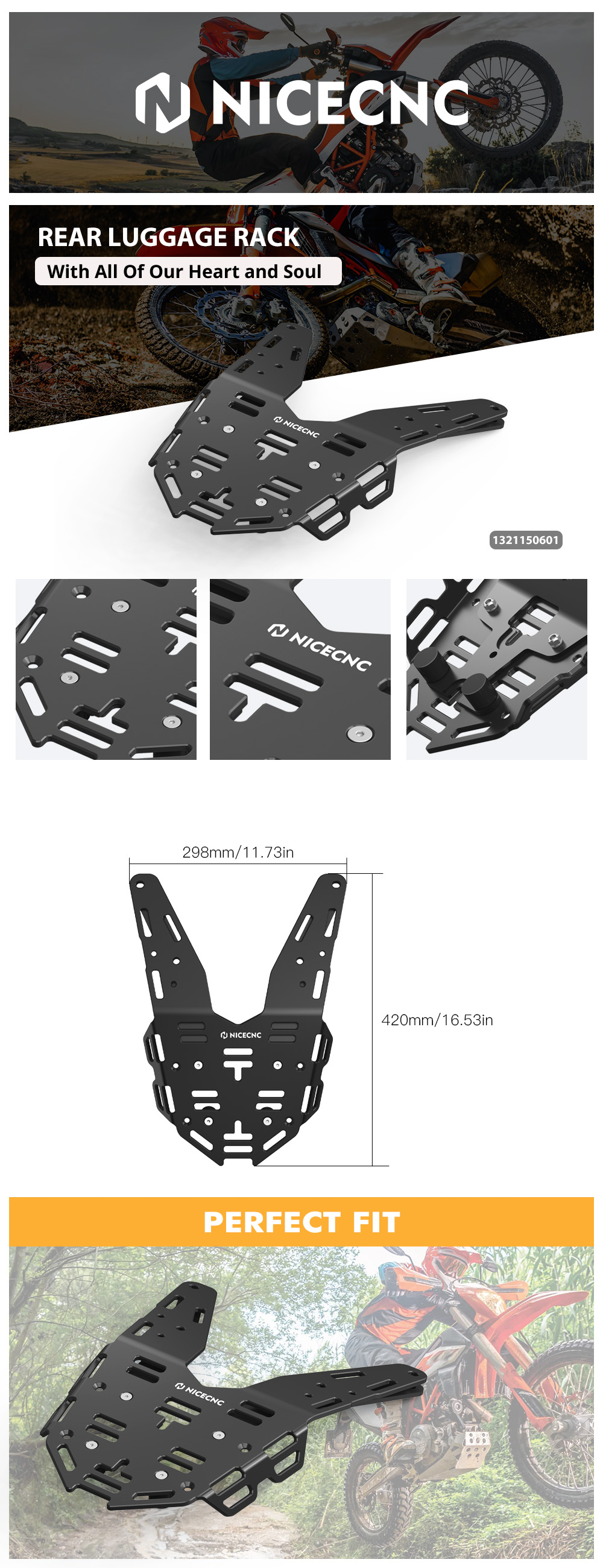 【Compatibilité avec le porte-bagages】Propose vingt-deux fentes - points de fixation pour tous les types de bagages souples, sacs à outils ou petits sacs à roulettes.Prêt pour Rotopax - trous pré-percés pour le montage Rotopax, pour un bidon d'eau ou de carburant Rotopax de 1 gallon - le montage peut être effectué sans démonter le porte-bagages. Compatible avec les boucles Kriega OS Rack - pour un montage pratique des sacs Kriega.
