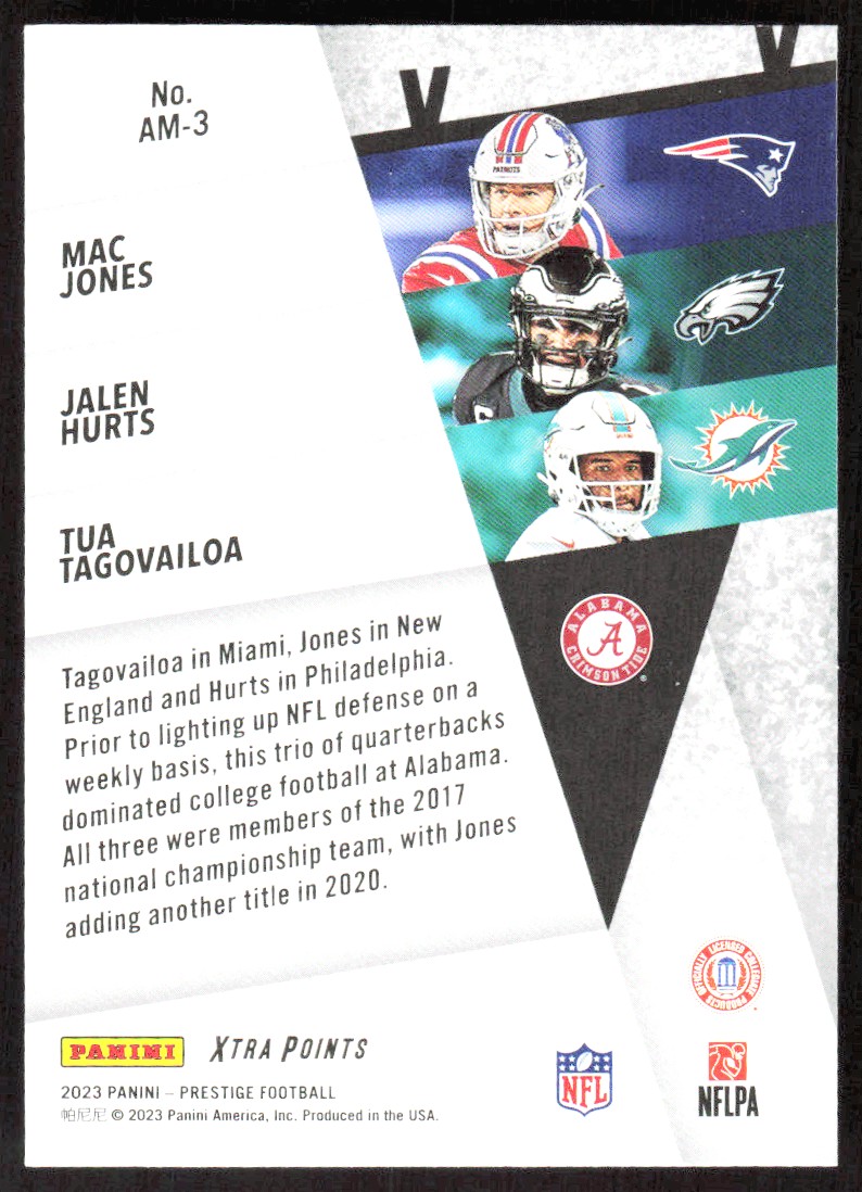 2023 8785E Panini Prestige Alma Maters Jalen Hurts / Mac Jones / Tua Tagovailoa