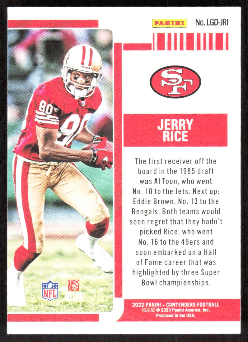 2022 9209E Panini Contenders Legendary GREEN Jerry Rice San Francisco 49ers