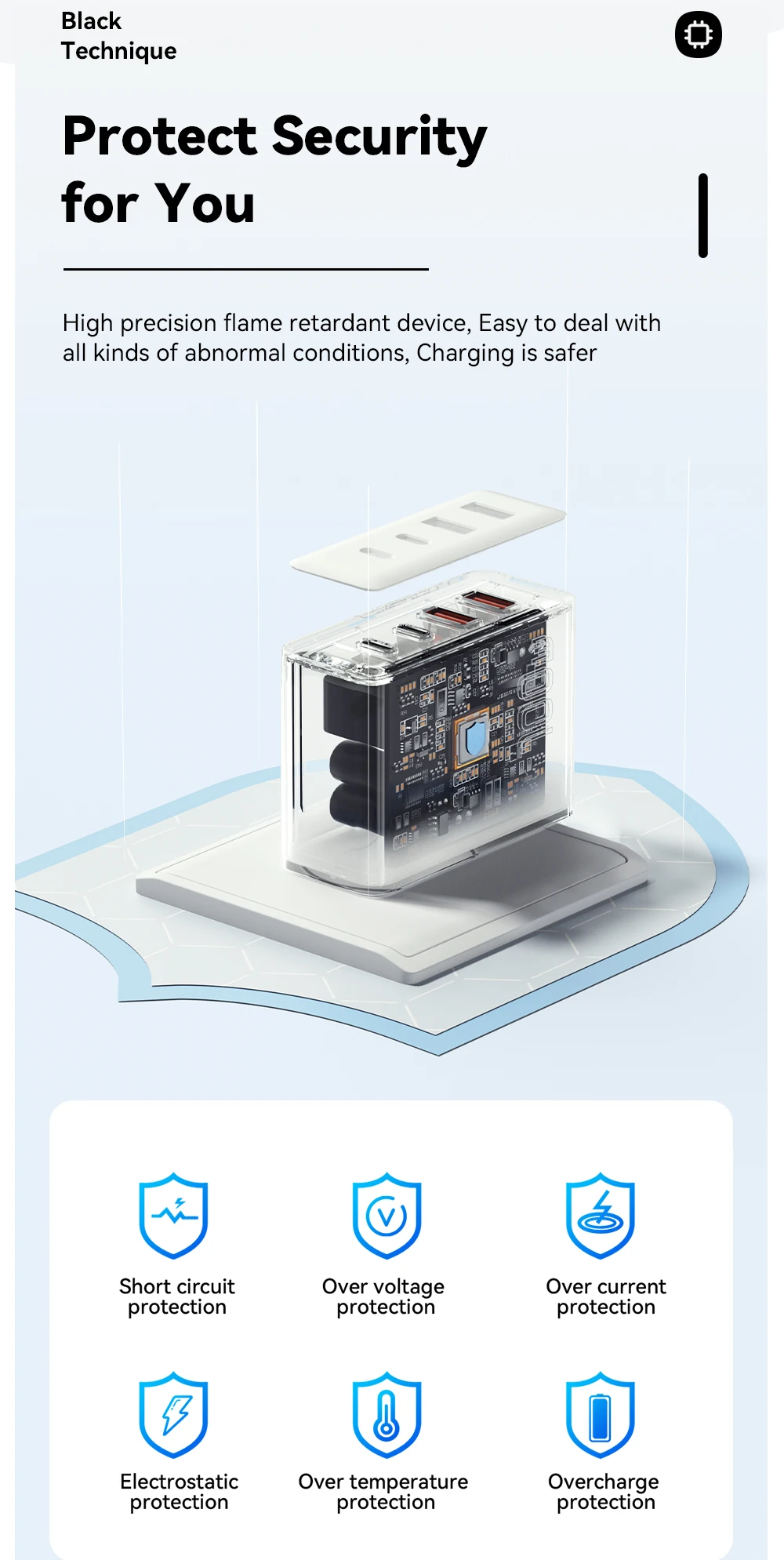 Feature 4:Multi-protocol support, For PPS PD3.1 PD3.0 PD2.0 QC4.0.QC3.0 QC2.0 FCP SCP BC1.2 DCP Apple2.4A Samsung 2A Samsung AFC and many more.