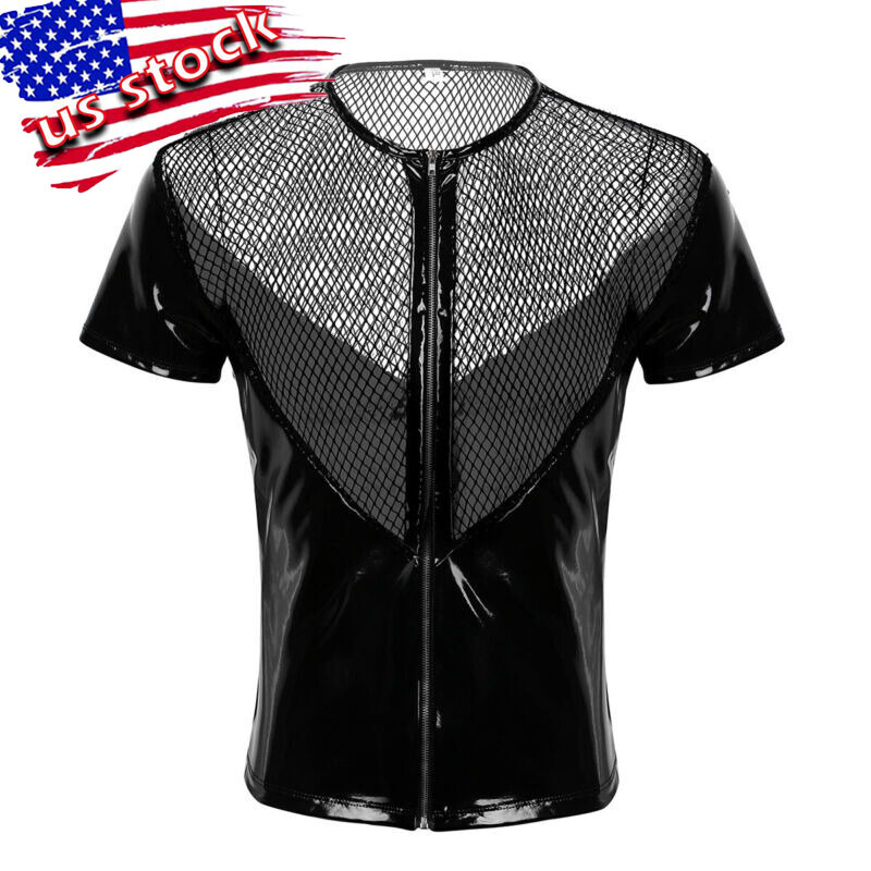 US Women's 2Pcs See Through Mesh Sheer Tracksuits Long Sleeves Shirts Pantyhose