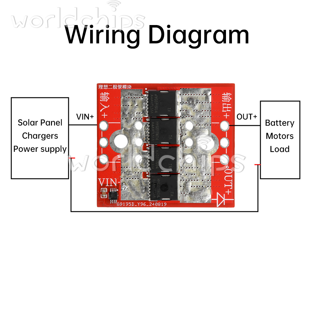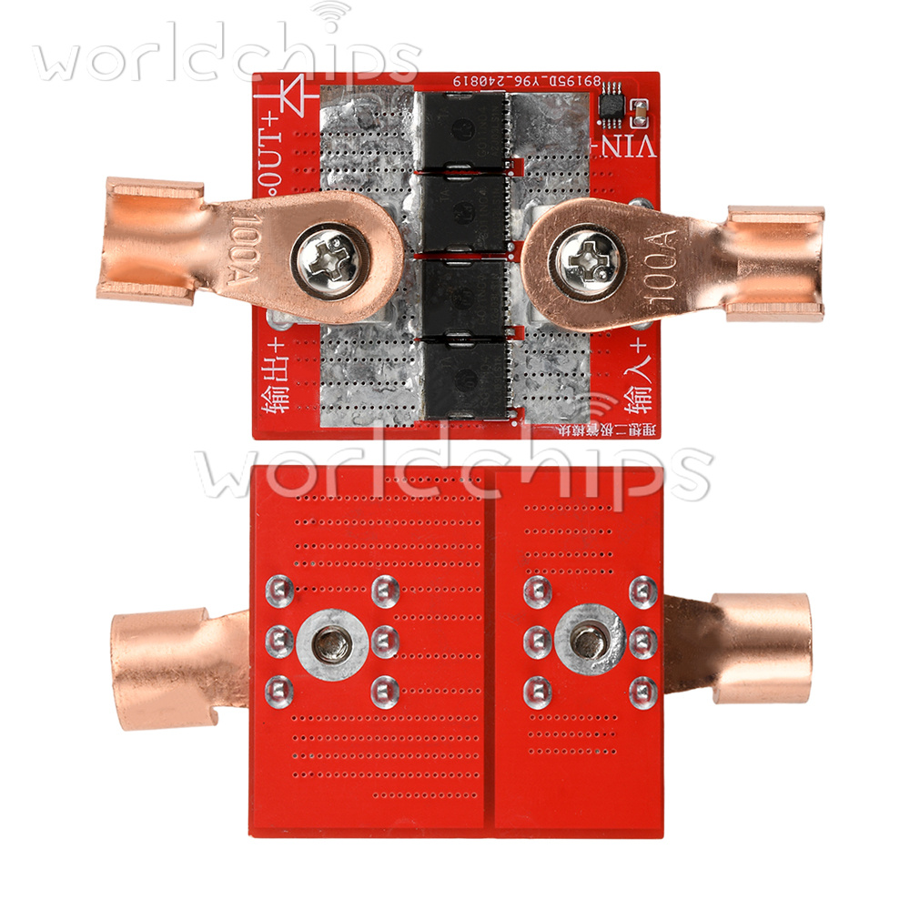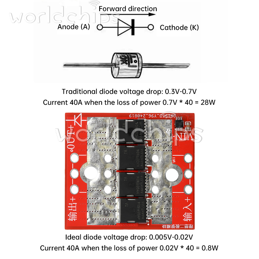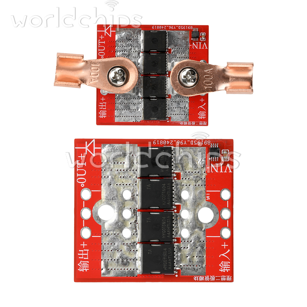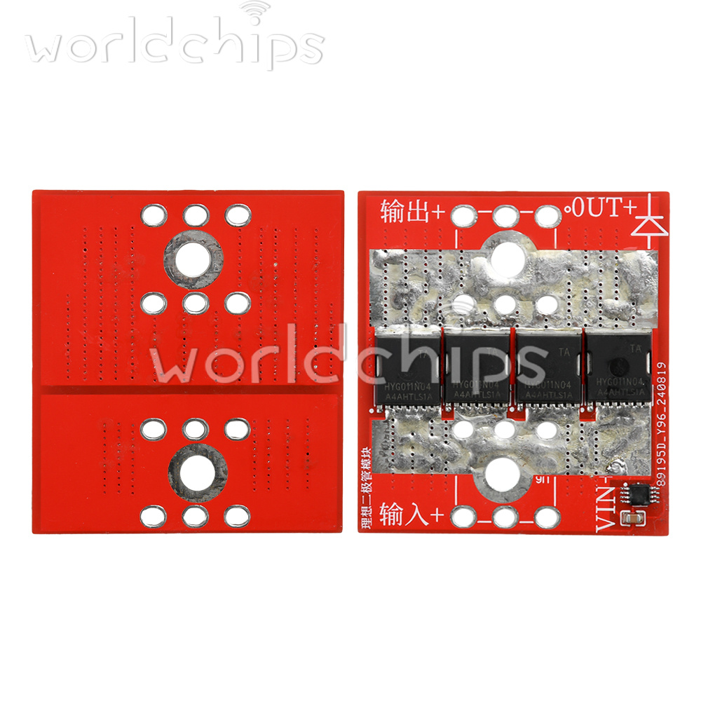 Product Description: This module uses imported MOS management chip, on board 4 0.9mΩ, 320A high power MOS tube, over high current temperature rise is very low. This product is not grounded, according to the official technical information documents, after testing through the ideal diode voltage will be 0.03 ~ 0.2V or so fluctuations (current fluctuations in different voltages, all the ideal diode on the market without grounding are the same there is this problem) 98% of the time when the fluctuation of the voltage on the lowest point of heat is also the lowest, 2% of the time through the body of the diode to the chip power supply, this time the fluctuation of the voltage, the voltage of the power supply to the chip, this time the fluctuation of the voltage, the power supply to the chip. Chip power supply, this time the fluctuation of the voltage is the largest, the heat is also the largest. Suitable for replacing ordinary high-current diodes, batteries, solar panels, anti-backflooding anti-backflow. Series connection on the input side of the power supply is ideal for anti-reverse connection.