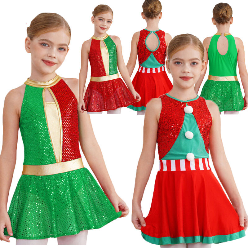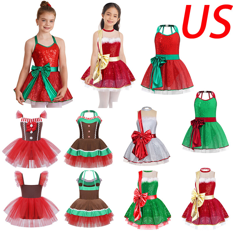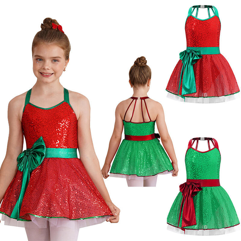 US Kid Girls Dress Patchwork Dress Glittery Uniform Cheer Leader Costume Dance