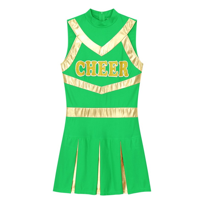 Letter “CHEER” print on the front echoes with metallic shiny patchwork. Youthful design makes you an energetic cheerleading member.