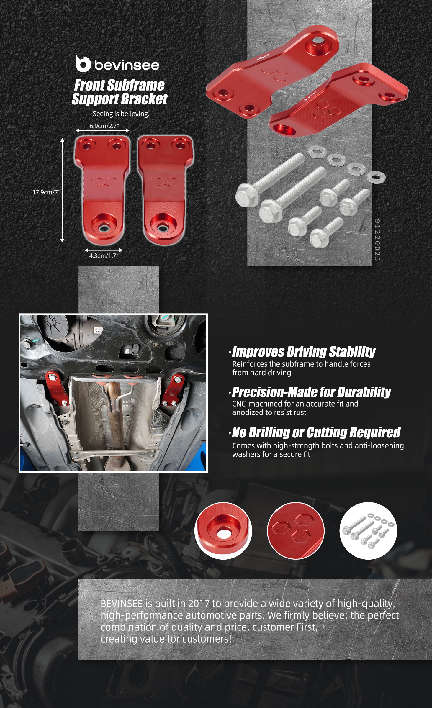 【Improvise la stabilité de conduite】Renforce le sous-châssis pour qu'il puisse supporter les forces d'une conduite difficile, améliorant ainsi la stabilité et la réactivité du châssis.