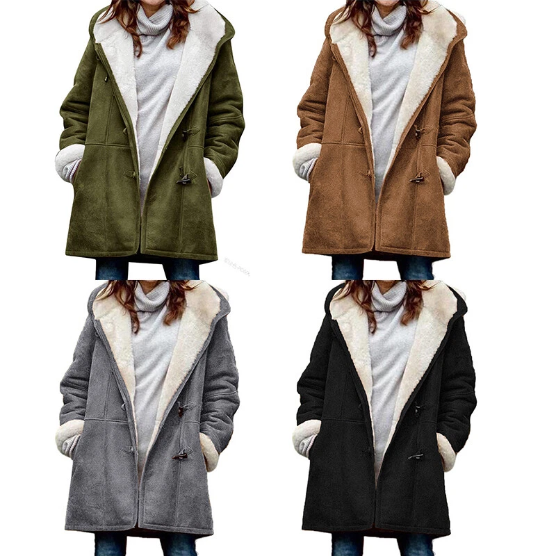 Womens Fleece Lined Hooded Long Coat Overcoat Warm Parka Cardgan Jacket Outwear