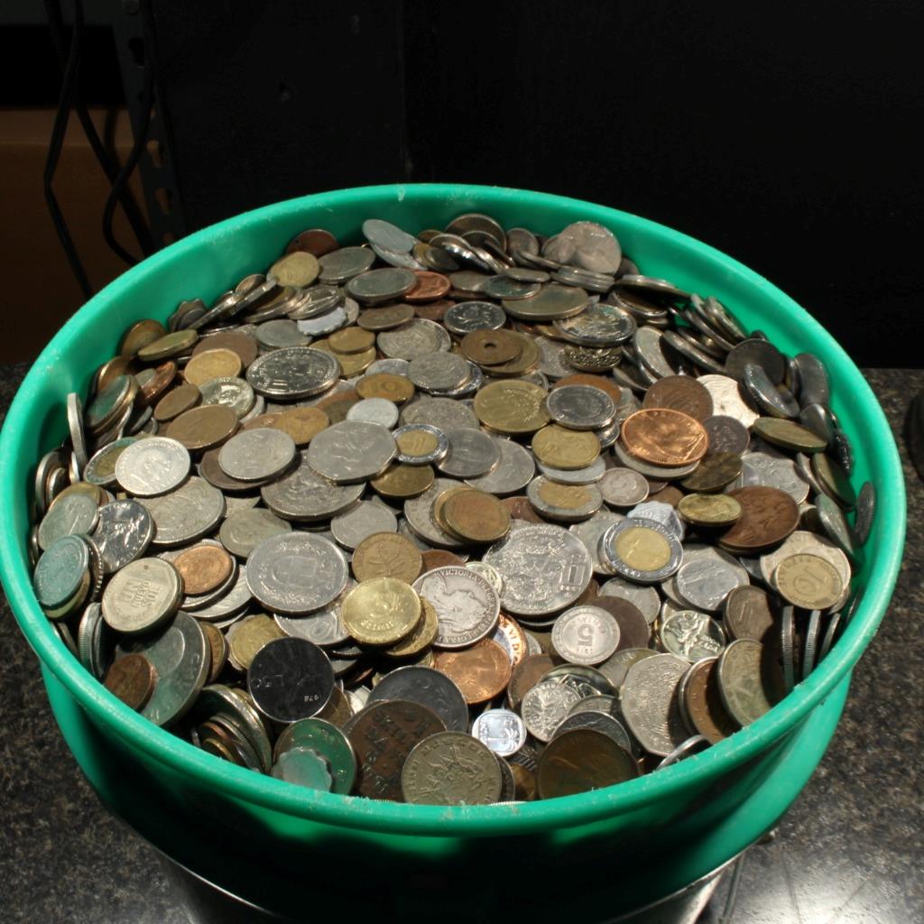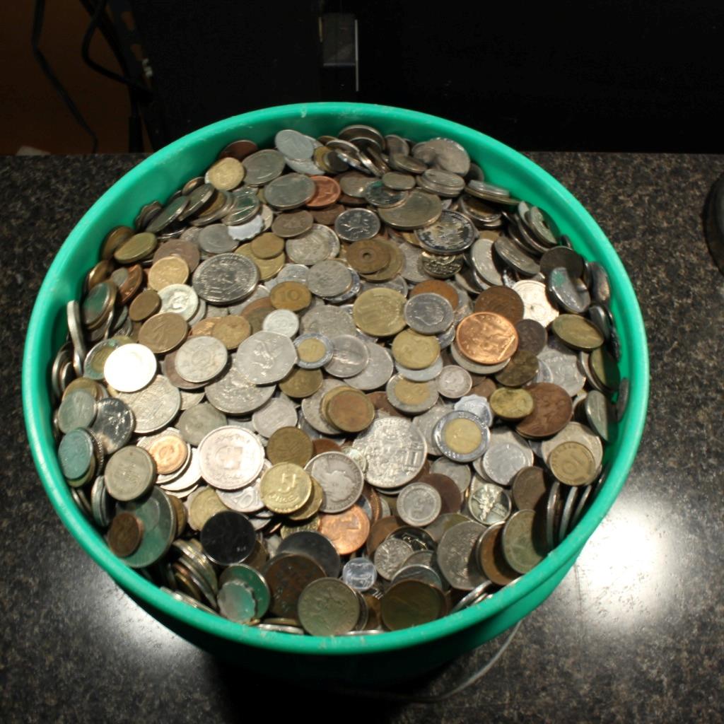 We just bought out several hundred pounds of foreign coins in bulk from a company that travels the United States buying coins, jewelry and collectables from the general public. When they purchase Foreign Coins after simply removing the obvious larger silver and gold bullion coins the remainder gets tossed into 5-gallon buckets until they accumulate enough to wholesale them off. This purchase was from such an accumulation. For a limited time only, we will be offering these coins in Large One Pound units at only $24.95 per group with included "free Shipping"!