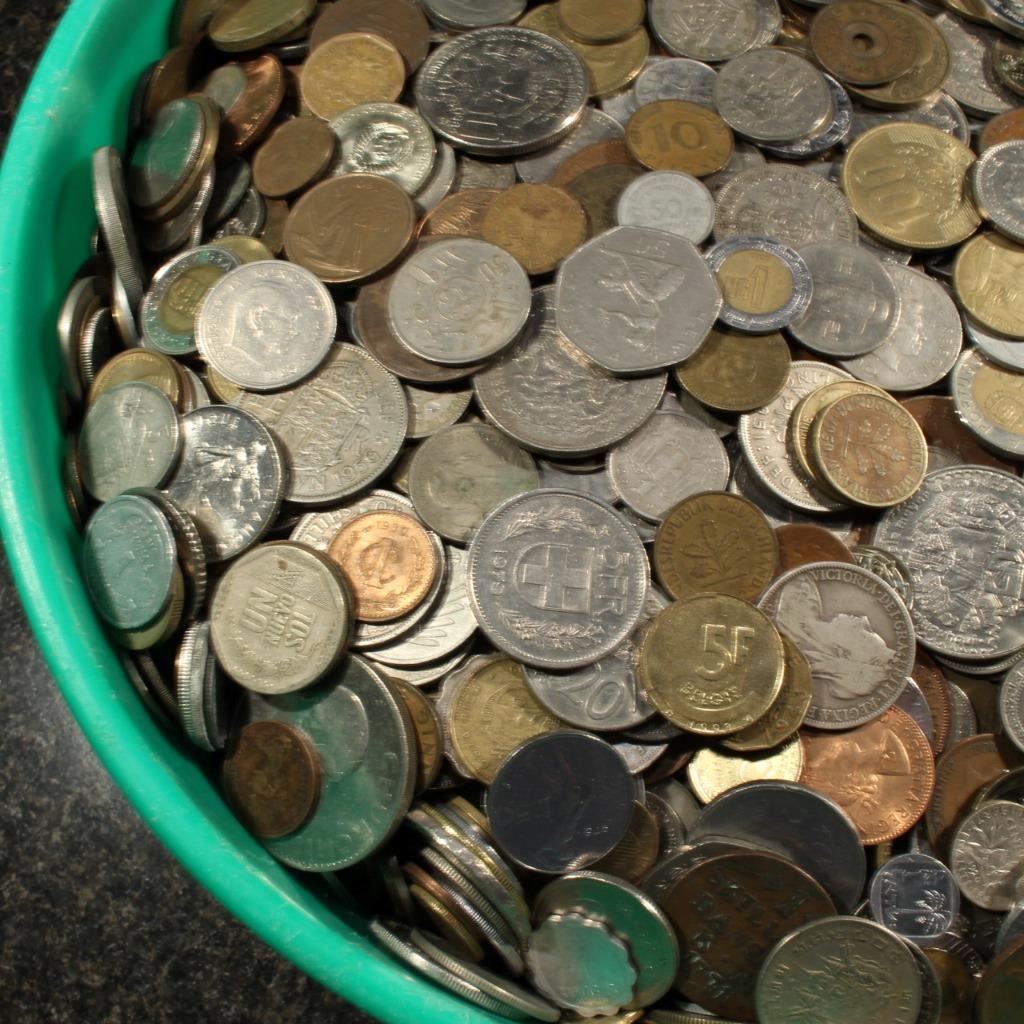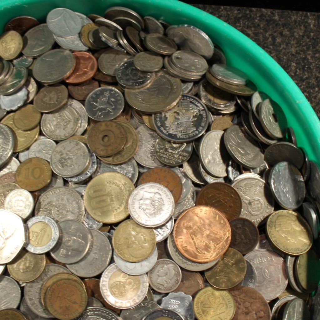These coins will remain unsearched by us! Honestly, we don’t know enough about foreign coins of any sort to be able to tell a common coin from perhaps a rarer coin so no telling what you may find! Each and every group will simply be scooped out of the buckets mentioned & shown, weighed up, sealed, packaged and shipped From a couple of sample groups, each full 1 LB lot on average should contain about 85 to 95 coins but can vary as these lots are being sold by weight As you can see in the pictures a great variety of countries are represented in these groups As this is a bulk coin lot listing, please do not inquire or request particular dates, countries or metal compositions.