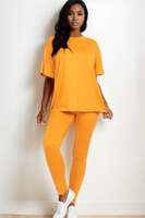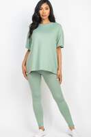 Design: The set includes a classic oversized t-shirt paired with flattering leggings. The relaxed top falls at a comfortable length, while the leggings feature a snug fit, offering a balanced and chic silhouette.