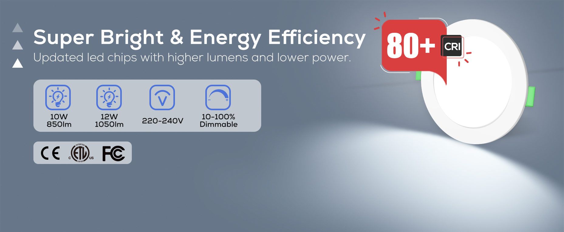 10W = 750/850/800lm 12W = 850/1050/950lm |