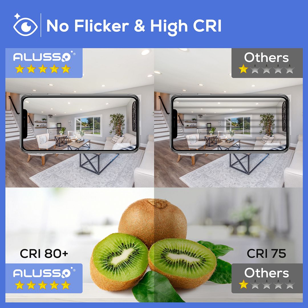 🏆【High quality LED ceiling spotlights】 ALUSSO LED downlights round with High Efficiency SMD2835 light source, Low consumption and high brightness, corresponds to 100W halogen lamp, 90° beam angle make your room brighter.