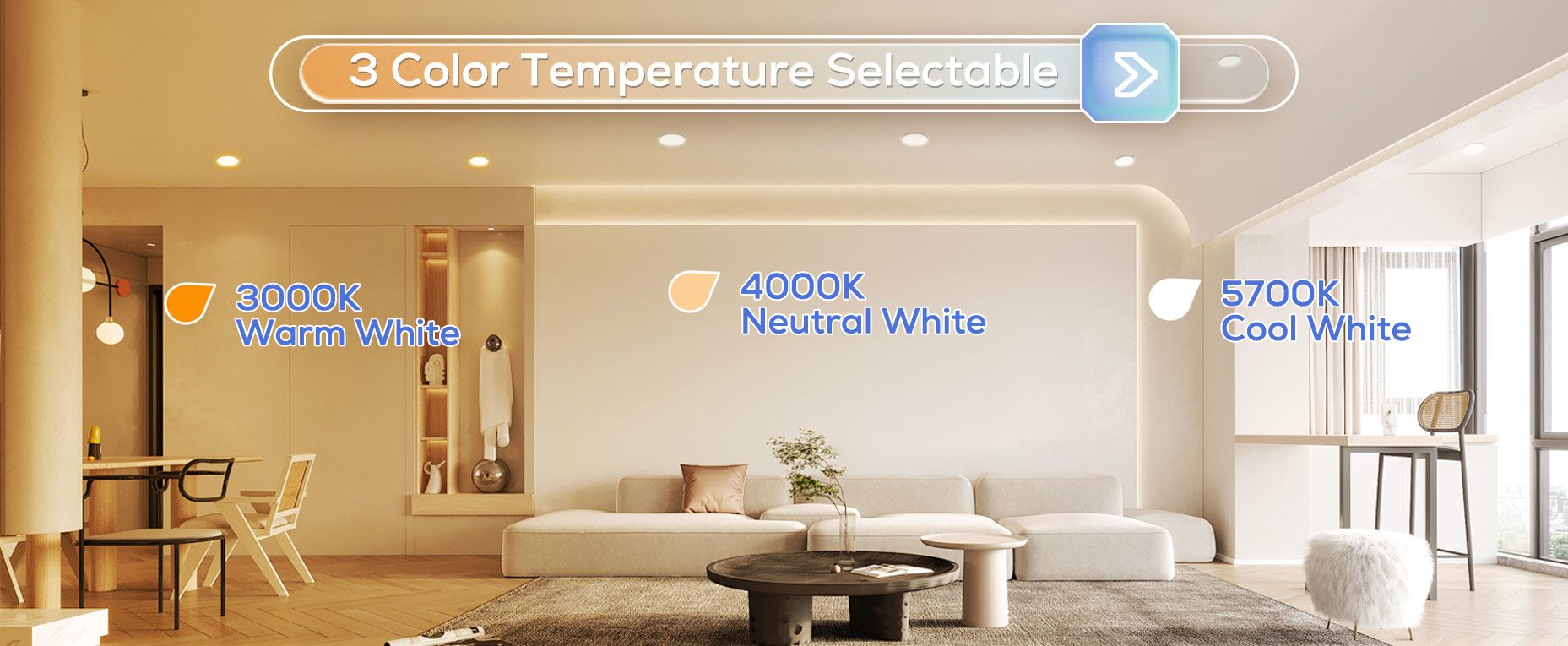 🏆 【3 Color Temperature Adjustable】 The LED downlights with CCT design, the color temperature can be freely set to 3000K warm white / 4000K neutral white / 5700K cold white. Simply click on the color temperature switch on the back of the downlight to select the most suitable color temperature for your home.