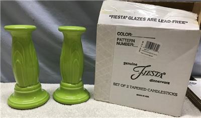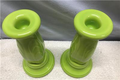 For sale is a Set of 2 Fiestaware Chartreuse Tapered Candlestick Holder, H.L.C. USA.