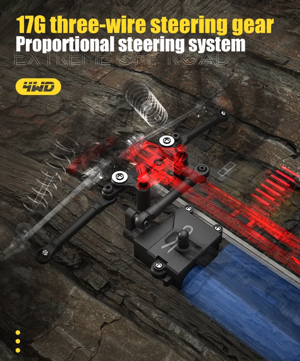 4. 2.4G full scale synchronized remote control system . Full ratio throttle/steering.
