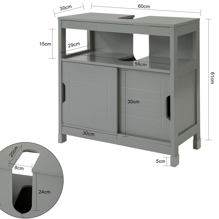 Der Schrank bietet dank der Aussparung für den Siphon die Möglichkeit diesen unterhalb des Waschbeckens zu platzieren und somit den Siphon zu verkleiden.
