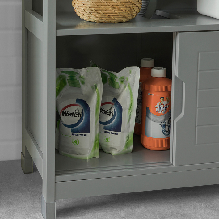 Schnell und einfach aufgebaut passt der Unterschrank unter jedes gängige Waschbecken in Ihrem Bad.