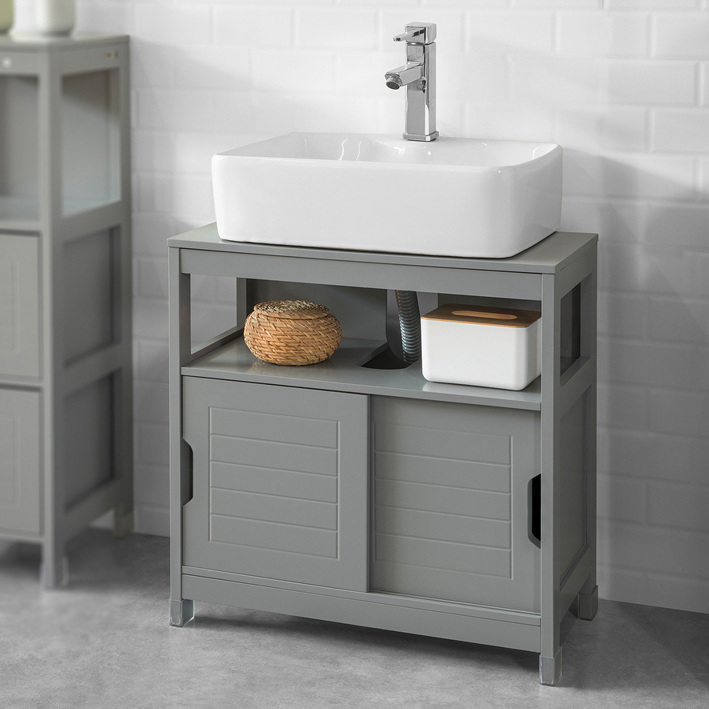 Mit dem praktischen, schlichten Waschbeckenunterschrank haben Sie endlich genügend Stauraum im Badezimmer. Der ist die ideale Lösung um in Ihrem Bad für Ordnung zu sorgen.