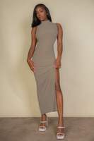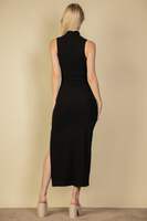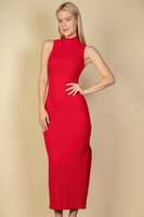Why Choose Ribbed Mock Neck Side Slit Sleeveless Bodycon Maxi Dress