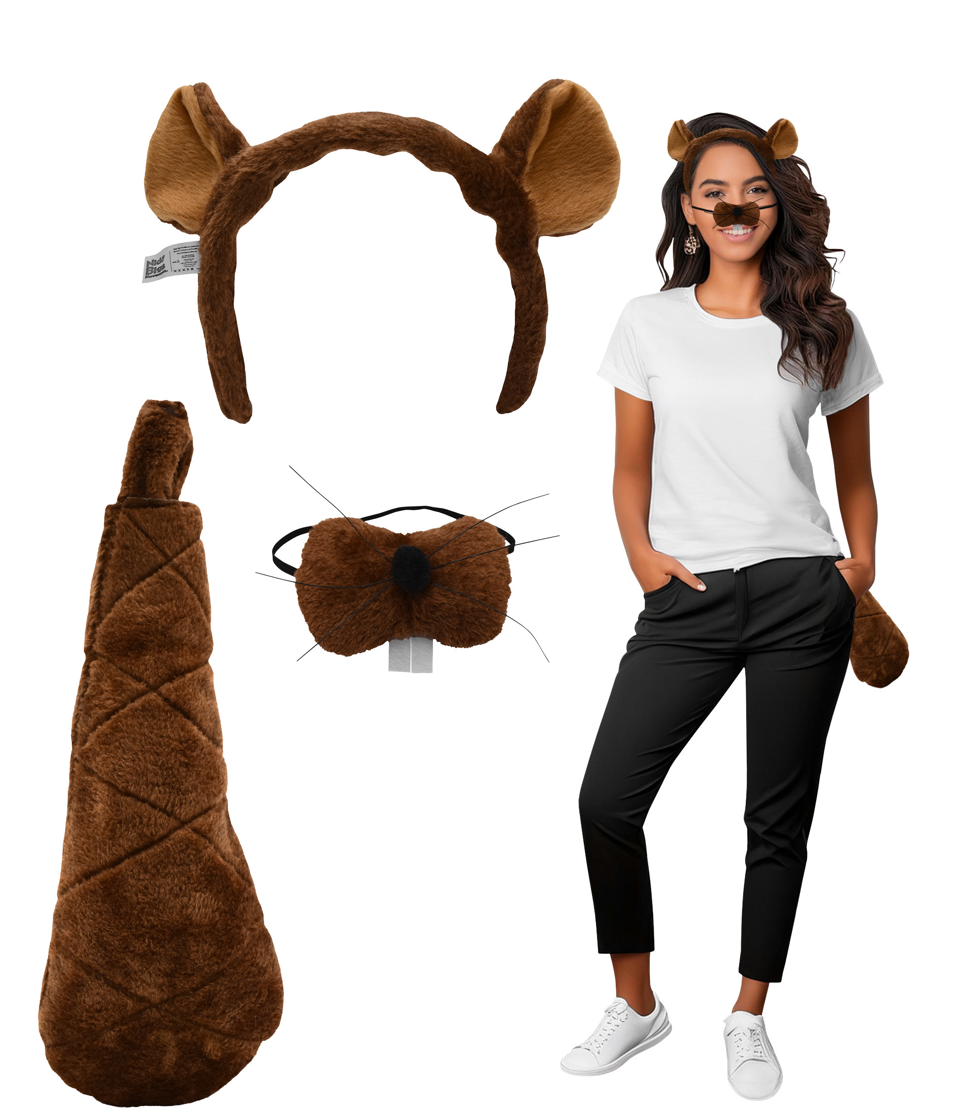 - Complete Beaver Costume Set – Transform into a playful beaver with this three-piece accessory kit! This fun and easy-to-wear set includes a soft plush headband with furry ears, a comfortable beaver nose with whiskers, and a large, textured beaver tail for a realistic and adorable look. Perfect for Halloween costumes, cosplay events, school plays, or just having fun with friends.