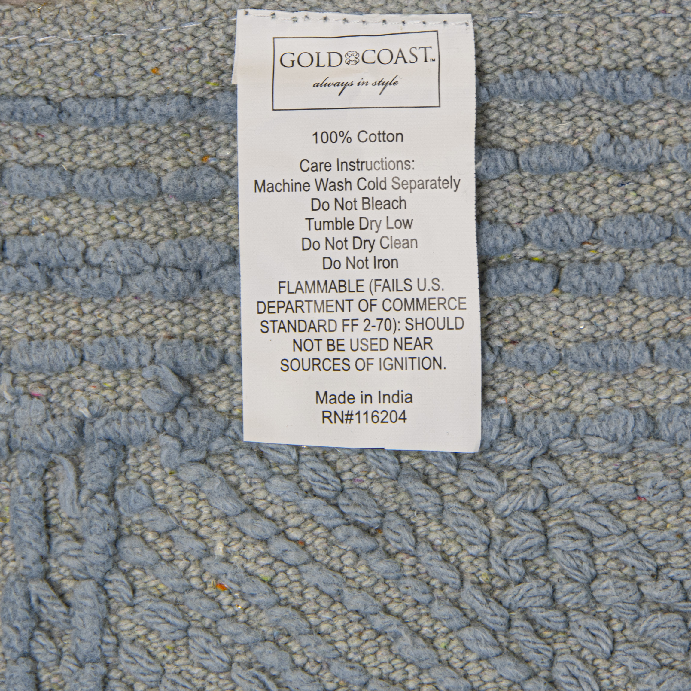 - Includes two 28" L x 18" W rectangle shaped rugs in blue