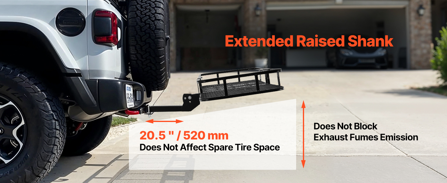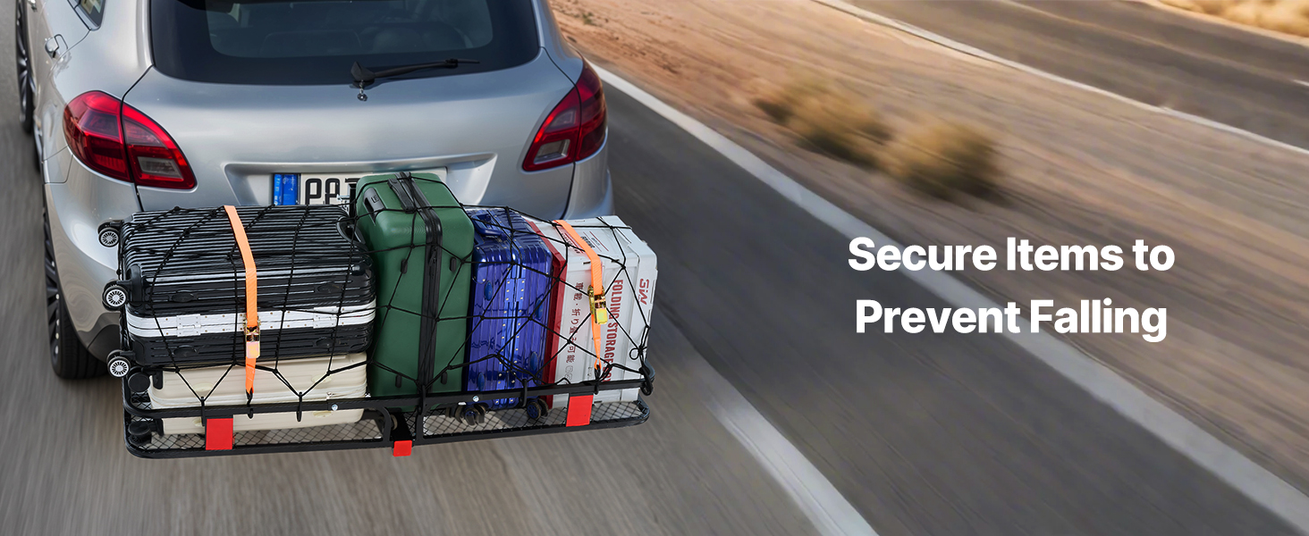Our hitch cargo carrier offers extra-large storage without taking up space in your car and can hold up to 500lbs. Made of heavy-duty steel, the hitch stabilizer enhances stability, avoiding jiggle or deformation while driving, so you can transport your items with confidence.