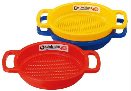 Großes Sieb von spielstabil in den drei verschiedenen classic-Farben rot, blau und gelb. Die kindgerecht geformten Griffe erleichtern das Sieben. Das elastische Material des Siebes ist von höchster Qualität und unverwüstlich, es widersteht intensivster Belastung und wurde in Kindergärten getestet. >>>>elastisches Material >>>>kindgerecht geformte Griffe Abmessungen ca. 20,5 x 26,4 x 4,2 cm Geeignet ab 2 Jahren