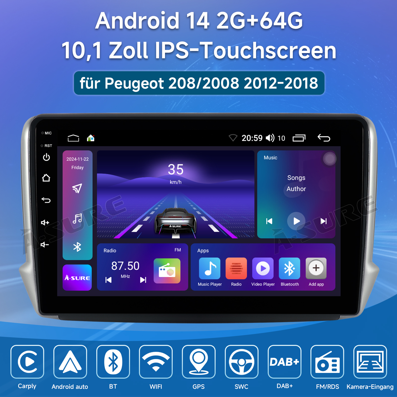 Android Auto & Wireless Carplay:CarPlay ist Apples sprachaktiviertes System für Autos, das darauf abzielt, über Siri und Ihr iPhone eine vereinfachte Startseite auf dem Touchscreen des Autos anzuzeigen, ohne dass Sie ständig auf den Bildschirm starren oder Tasten bedienen müssen. Sie können auch mit CarPlay interagieren, indem Sie die Sprachtaste am Lenkrad drücken. Android Auto verbindet Ihr Android-Handy mit unserem Radio und zeigt Ihre Android-Apps direkt auf dem Bildschirm an. Tippen Sie, um Navigationsanweisungen zu erhalten, verwenden Sie die Spracheingabe, um Textnachrichten zu senden, und tätigen Sie sogar freihändige Anrufe bei Familienmitgliedern. Android Auto ist darauf ausgelegt, Ihnen zu helfen, sich auf das Fahren zu konzentrieren und Ihre Zeit auf der Straße angenehmer zu gestalten.RAM & ROM & CPU: 2GB RAM ermöglicht es Ihnen, verschiedene Software reibungslos parallel laufen zu lassen, während der Ouad-Core-Prozessor für eine flüssige Bedienung ohne Verzögerungen sorgt und dem Fahrer ein besseres Nutzungserlebnis bietet. Mit 64GB ROM können Sie mehr Ihrer Lieblings-Apps und Videos herunterladen, was das Fahren angenehmer macht.