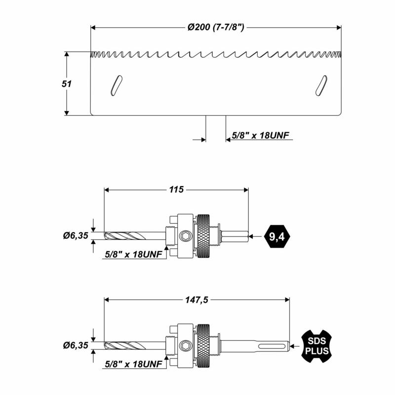 1 x Bi-Metall Lochsäge [Ø 200 mm / 7-7/8"]