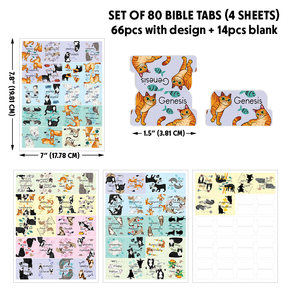 Package Contents: 1 Set of 80 Bible tabs ( including 66 pieces with nice designs and 14 blank tabs).