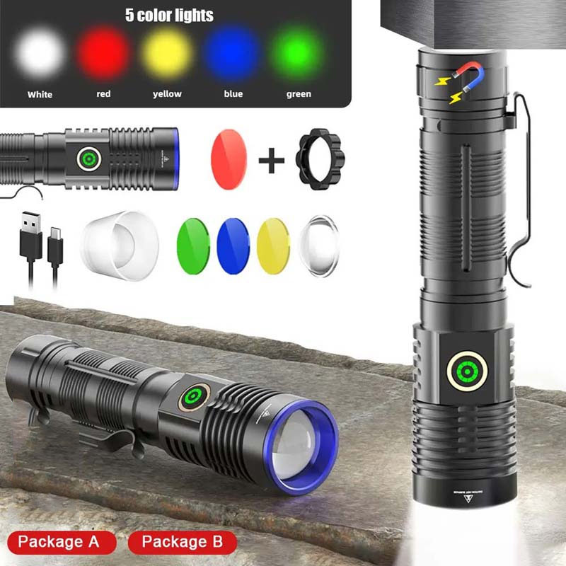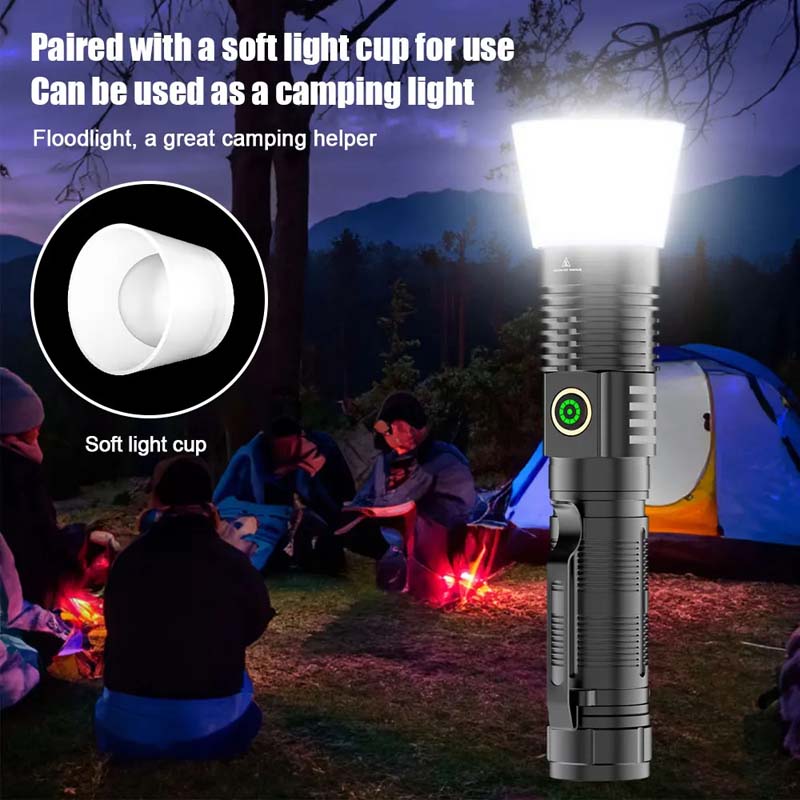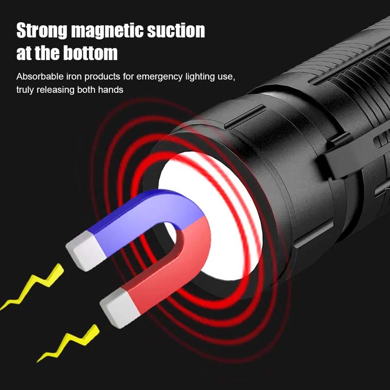 4. Variable zoom: The head of this flashlight can be stretched and zoomed, and the focus and floodlight can be adjusted according to the scene. It is powerful and you can use this handheld flashlight to illuminate the night sky with one click.