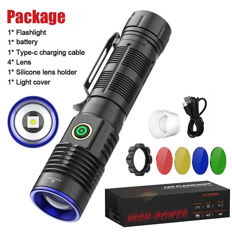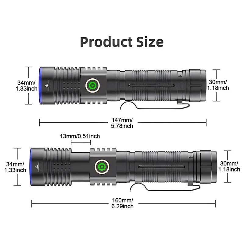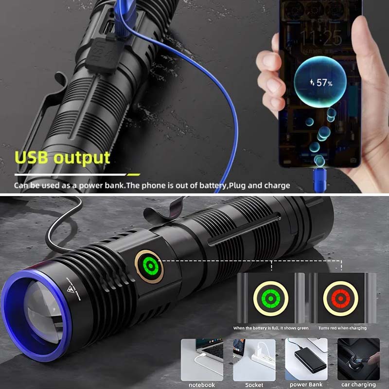 6. Charging method: Using a fast charging chip, Type-C charging, the charging speed is 50% faster than the old model. It can work for about 2-6 hours on a single charge. The flashlight also has a power output function. You can use it as a power bank to charge your devices via cable. Fit for multiple charging modes